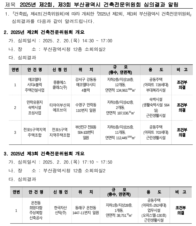 2025年2月20日に実施された第2回および第3回釜山広域市建築専門委員会の主な審議結果をお伝えします。